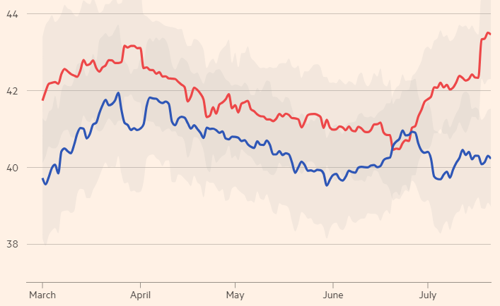 하지만 얼마 전 글에서 "민주당 내에서 등록 유권자의 56%가 바이든 대통령이 물러나 다른 당원에게 출마 기회를 주어야 한다고 응답"했다고 했는데요. 트럼프 피격 이후 그의 지지율 상승과 대선 토론회에서의 건강 우려가 큰 이유가 되었던 것 같습니다.